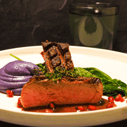 - Place the duck breast skin side up on a cutting board. Score the fat side of the breast in a criss cross pattern then season both sides well with salt and pepper.