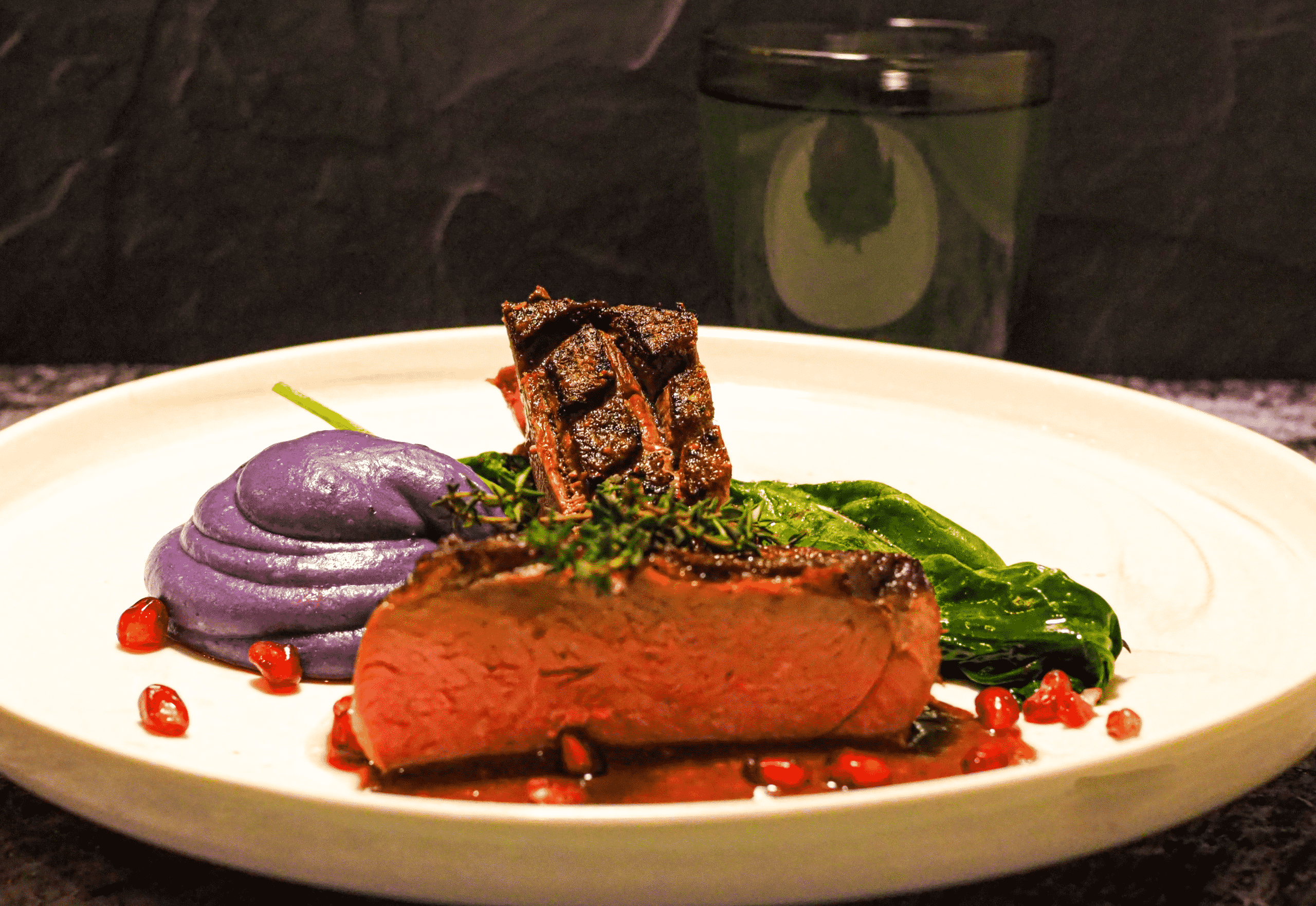 - Serve the sliced duck with mustarda and arugula. Garnish with thyme and pomegranate seeds. Serve with bread.