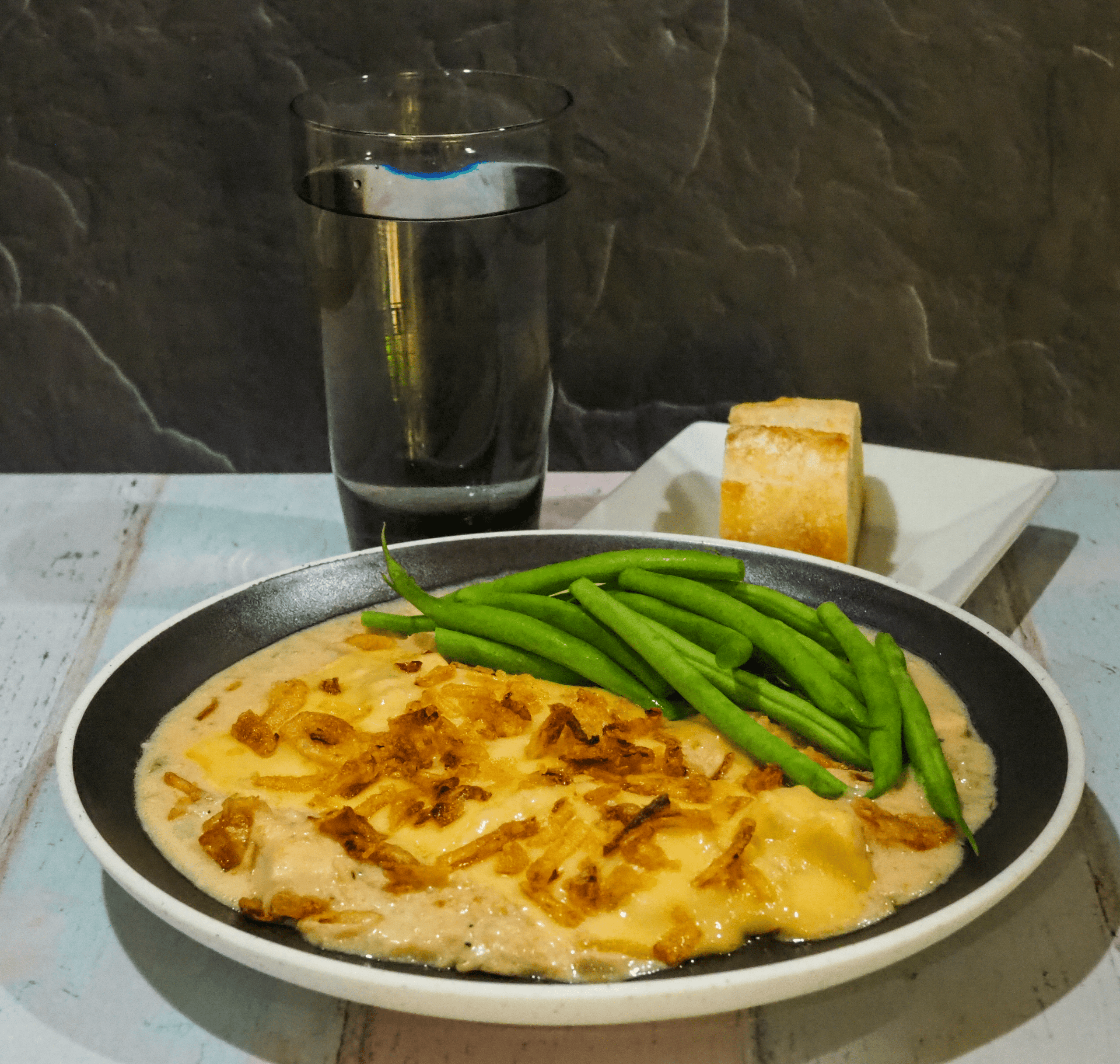 - Top with cheese and fried onions, and broil until golden brown, about 5 minutes. Let stand for 5-10 minutes.