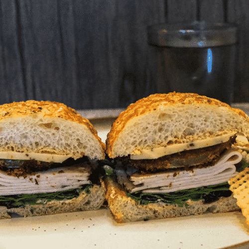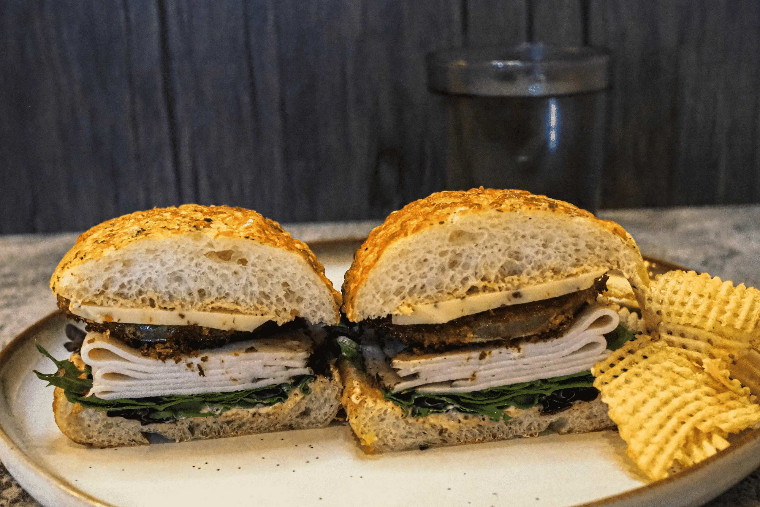 • Layer the roll with spring mix, turkey, fried tomato slices, and cheese.
