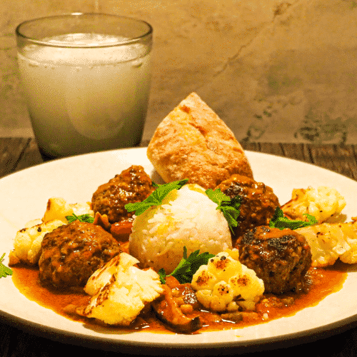 - Stir in the broth, coconut milk, paprika, turmeric, and lemon. Add the meatballs back to the pan. Bring to a low simmer until the sauce reduces, concentrates in flavor, and thickens to a creamy consistency. Season with salt and pepper to taste.