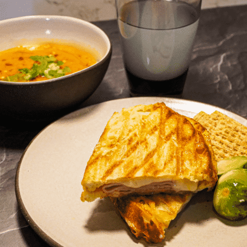 • Cook the sandwich until golden brown and the cheese has melted.
