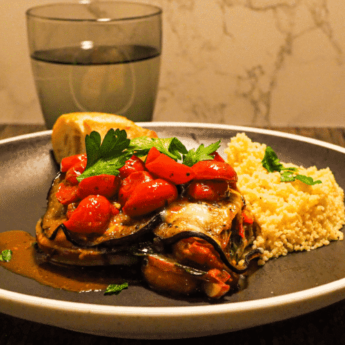 - 1 large Eggplant ends removed and sliced thin into 1/4 inch thick rounds