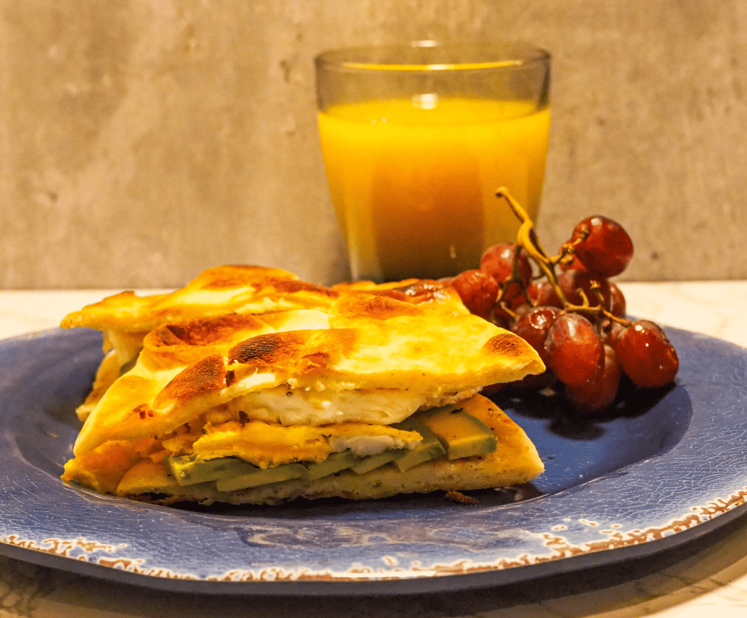 - Place the eggs on the naan, cut in half, and serve with grapes.