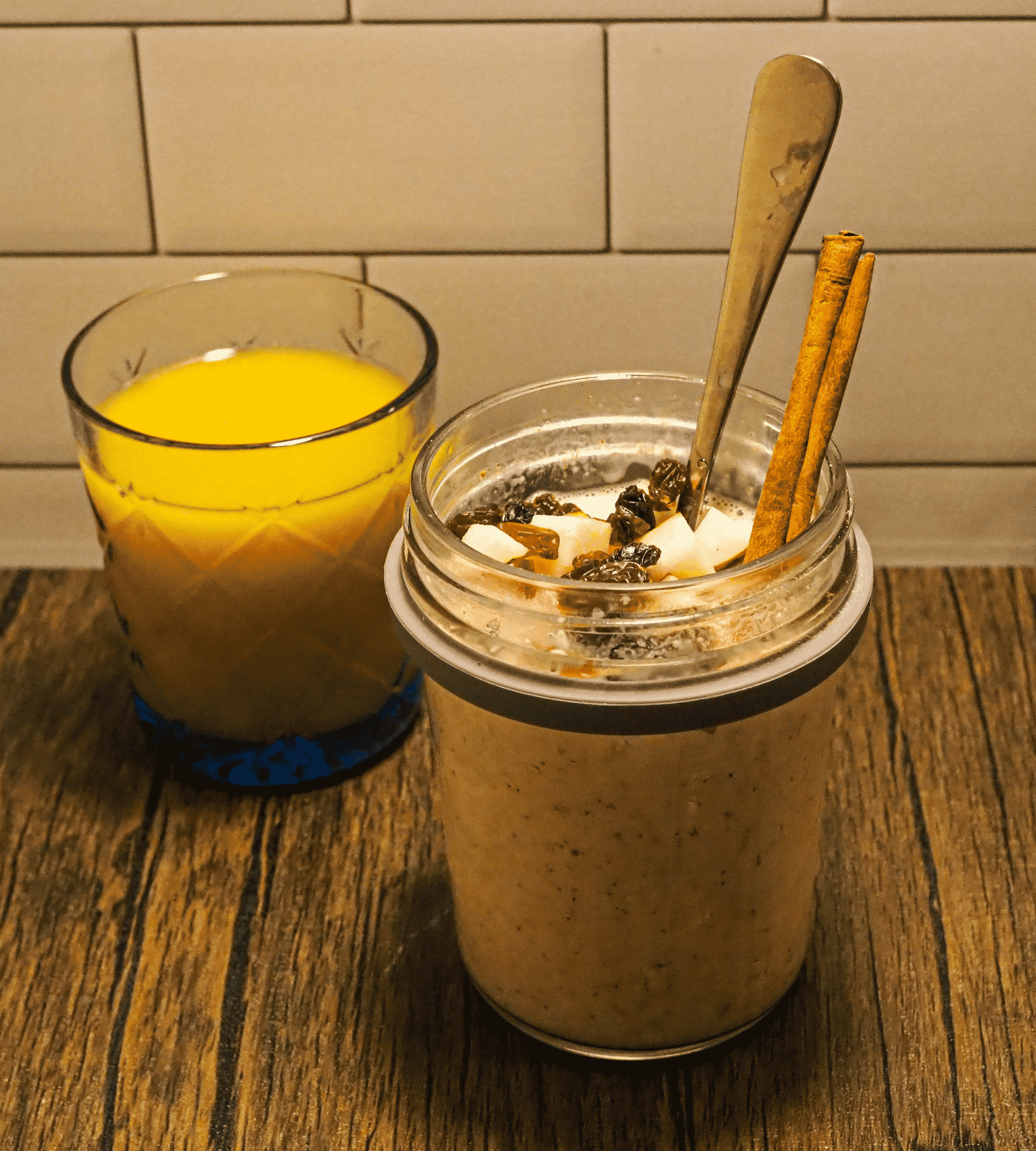 - To a mason jar or container with a tight fitting lid, add almond milk, yogurt, almond butter, honey, chia seeds, cardamom, and cloves. Stir with a spoon to combine. The almond butter doesn't need to be completely mixed with the milk. (Just ensure there's enough room at the top of your jar or bowl to allow for expansion and prevent overflow)