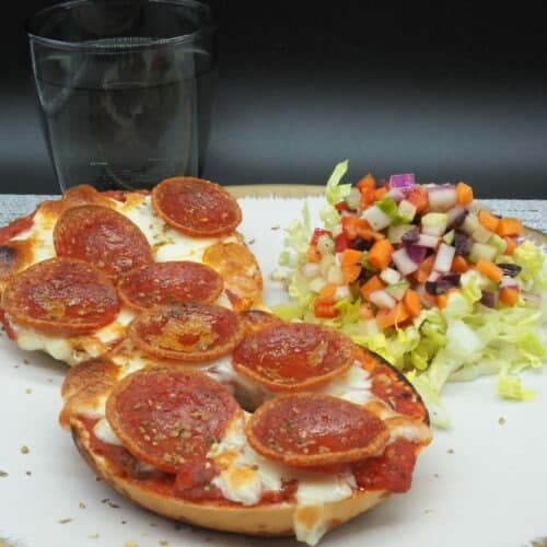 • Top with mozzarella and pepperoni. Lay on a foiled-lined baking sheet and place under the broiler until melted and golden brown, rotating the pan every few minutes. (Keep a watchful eye while using the broiler.)