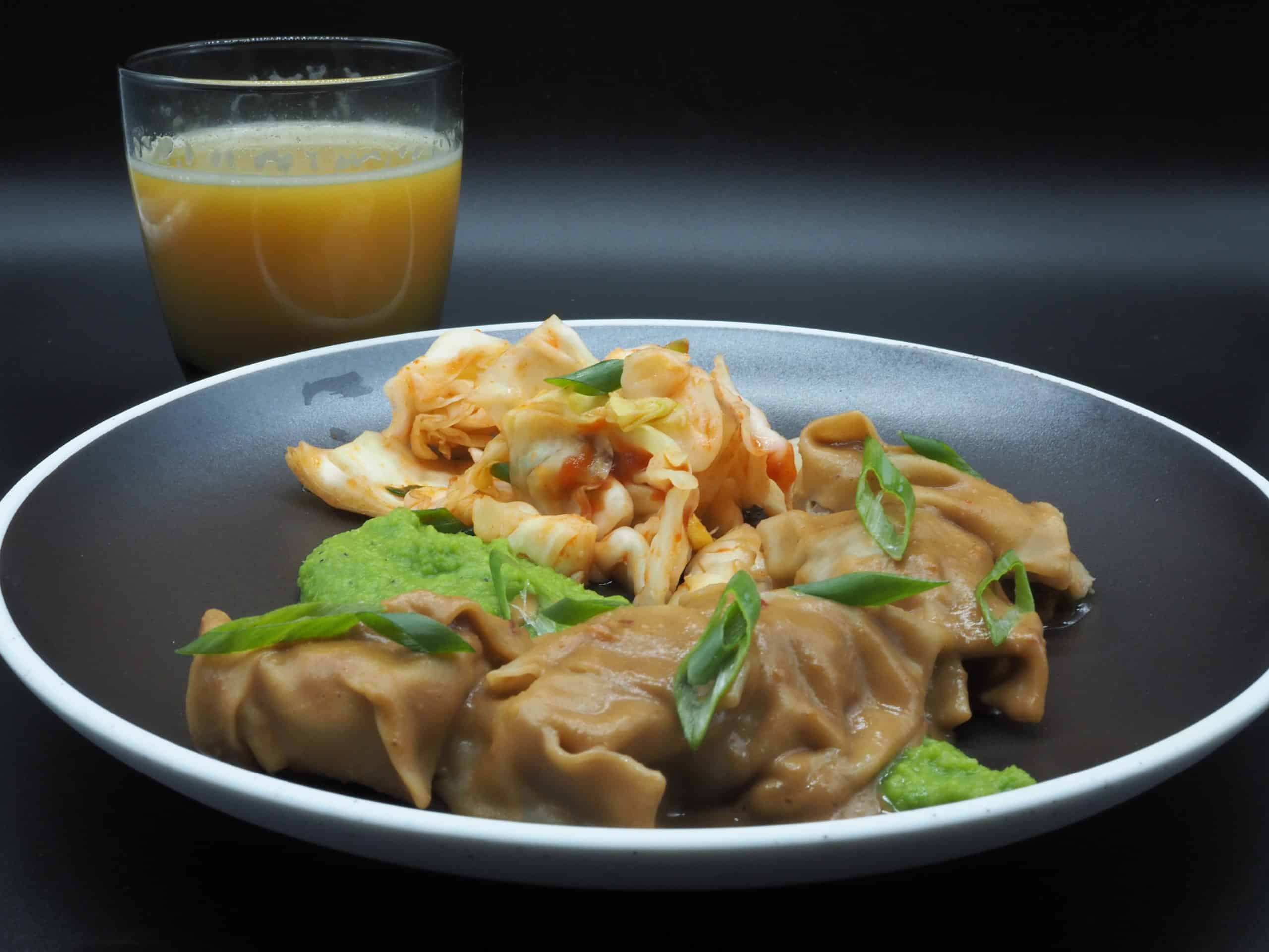 - Toss the dumplings in the sauce and serve. Garnish with scallions.
