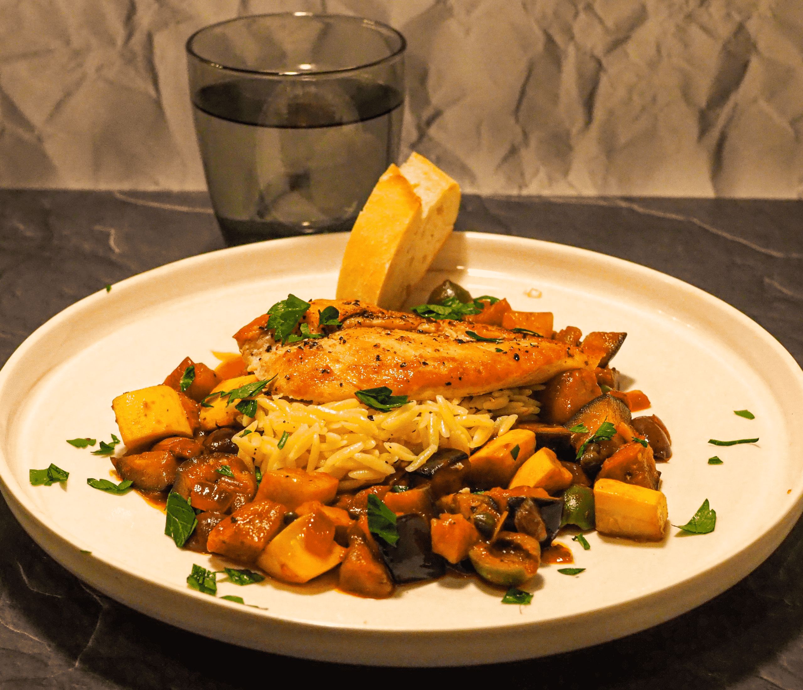 - Serve all together with bread. Garnish with parsley.