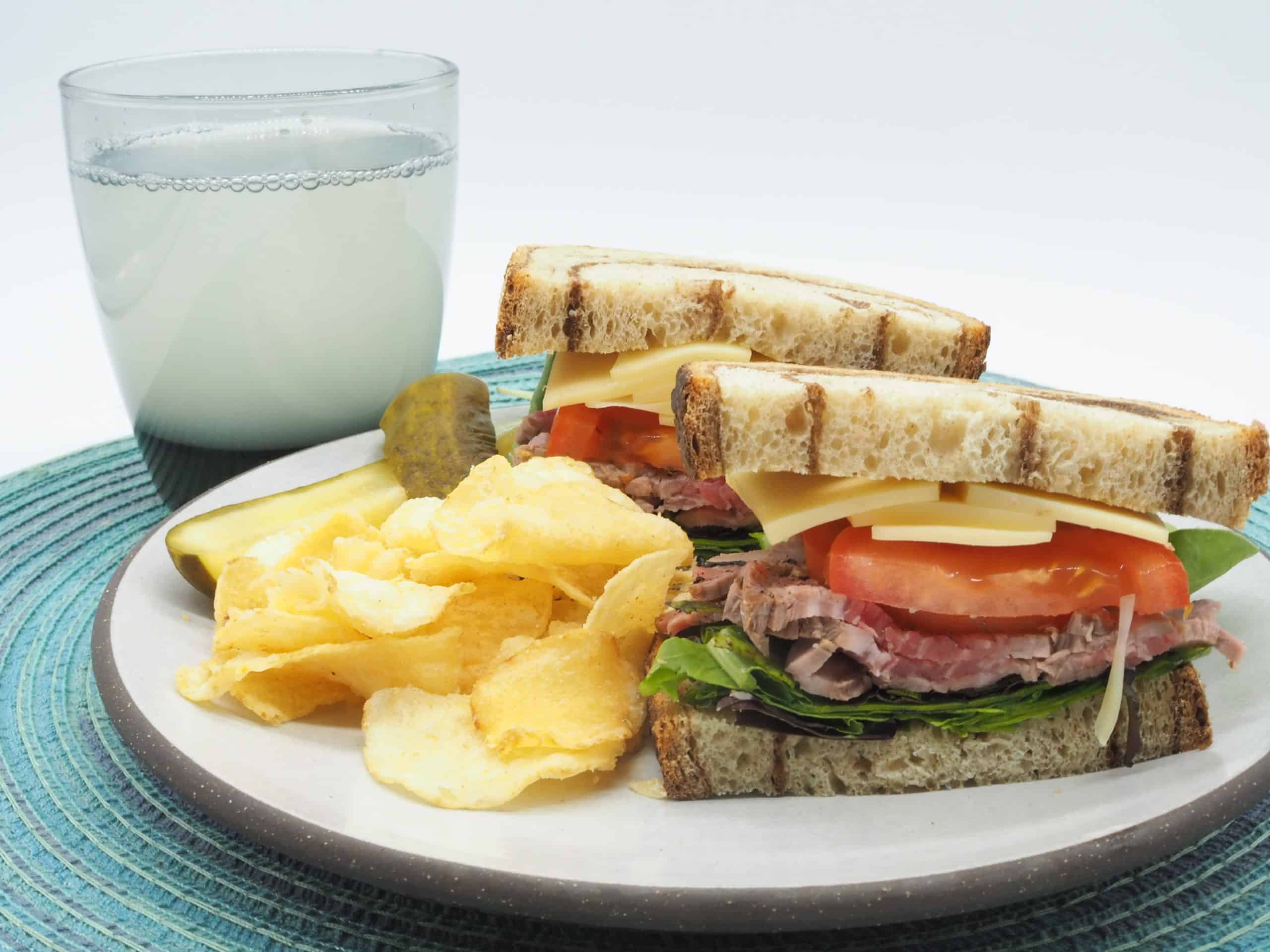 - Spread the mayo and mustard on each slice of bread, layer with spring mix, roast beef, and tomatoes. Season with salt and pepper, and add the cheese.