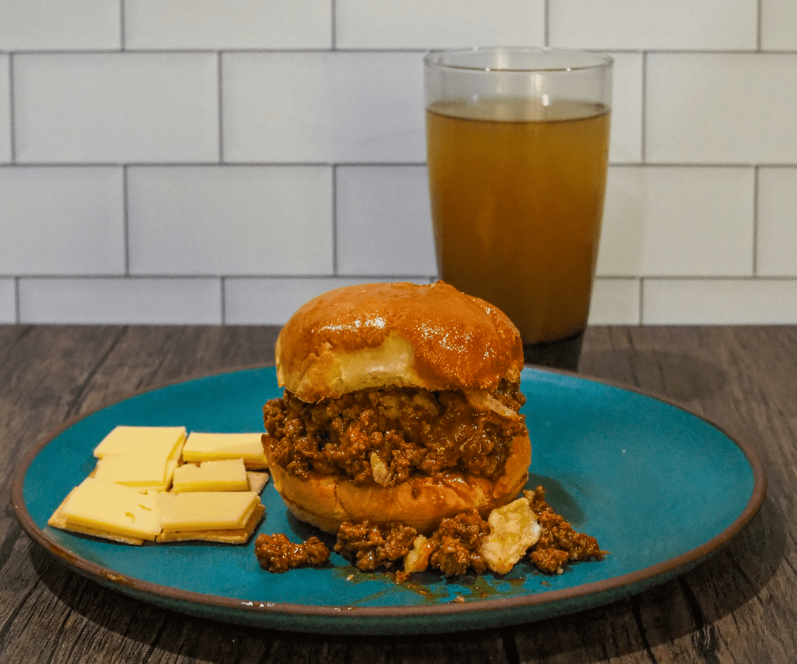 • Serve: Enjoy the sloppy joe with cheese and crackers, pickle, and apple cider.