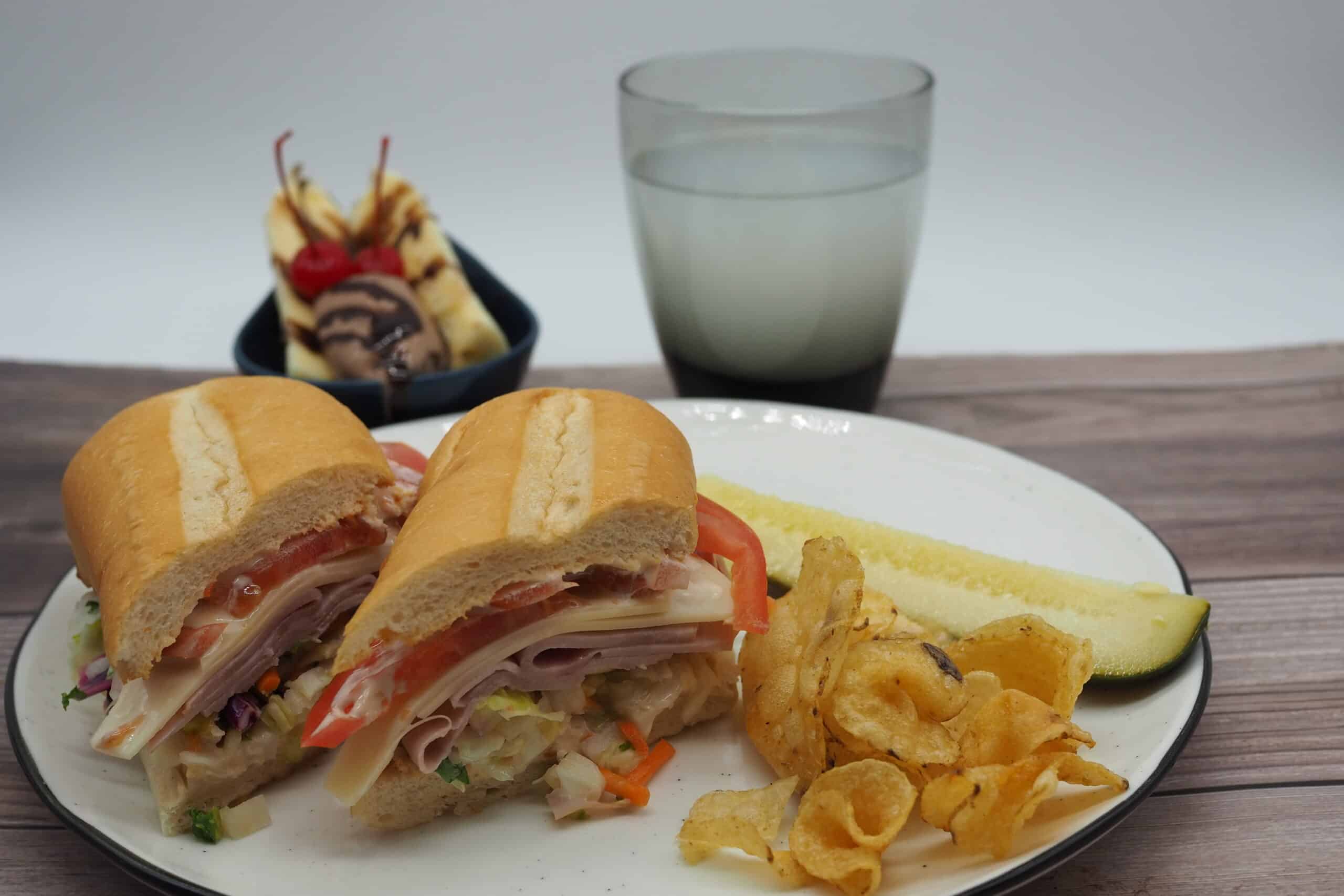 - Spread the mayo mixture on both halves of the bread. Lay down the slaw mix, turkey, cheese, and tomatoes. Cut in half and serve with chips.
