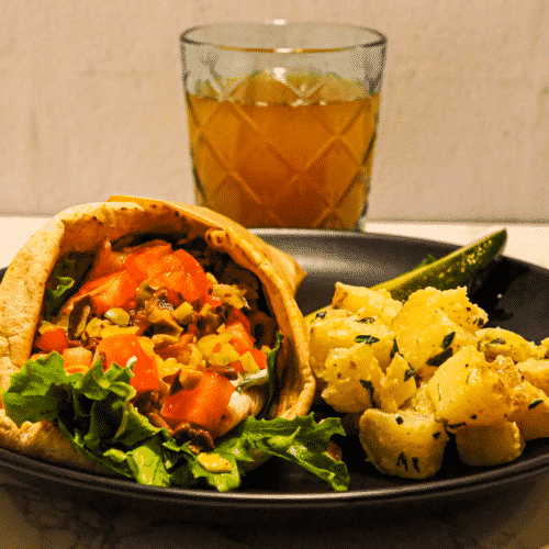 • Warm the pita on both sides in a nonstick pan over medium heat to light golden brown.
