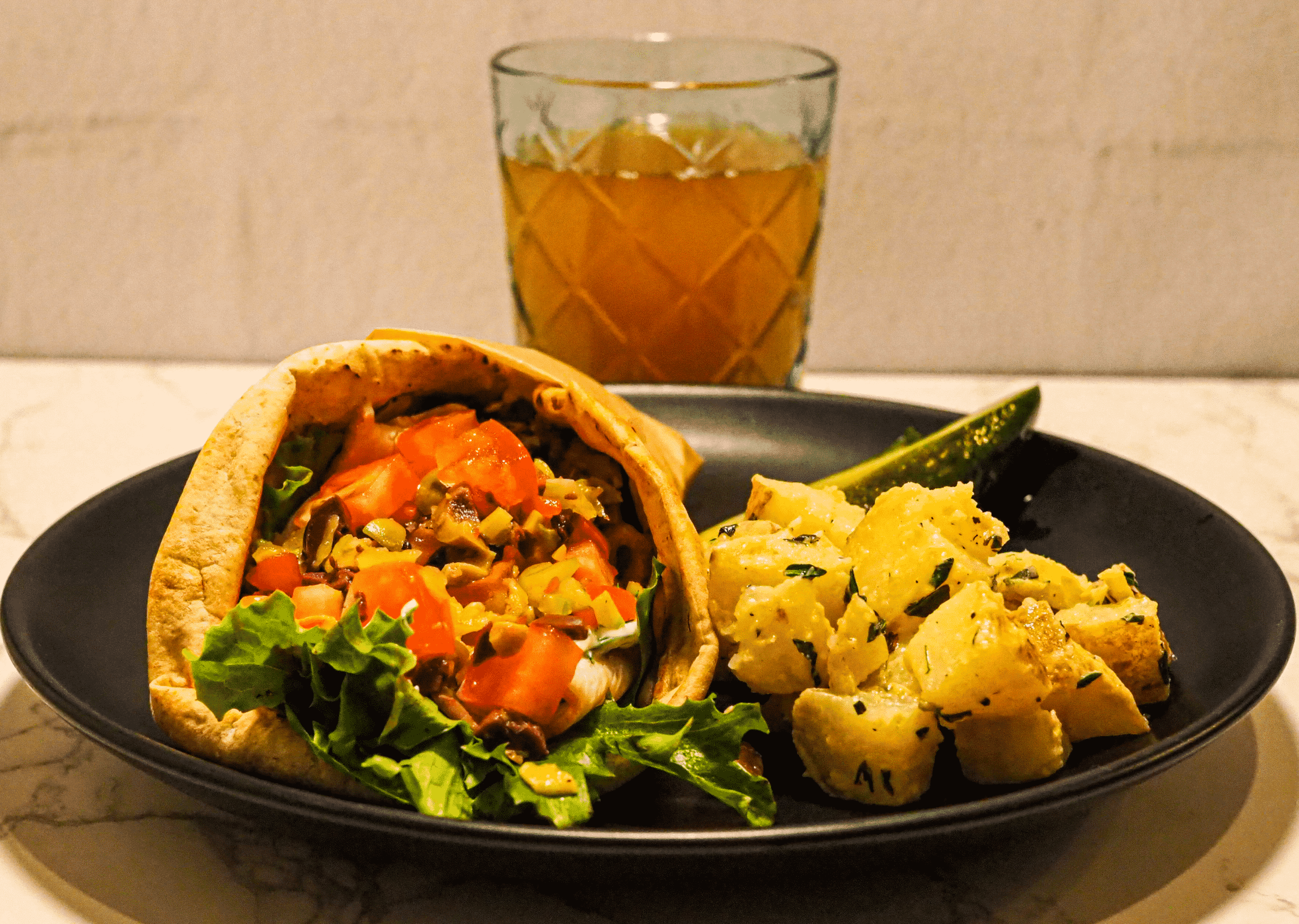 • Layer the pita with spring mix, turkey, aioli, diced tomato, and tapenade.