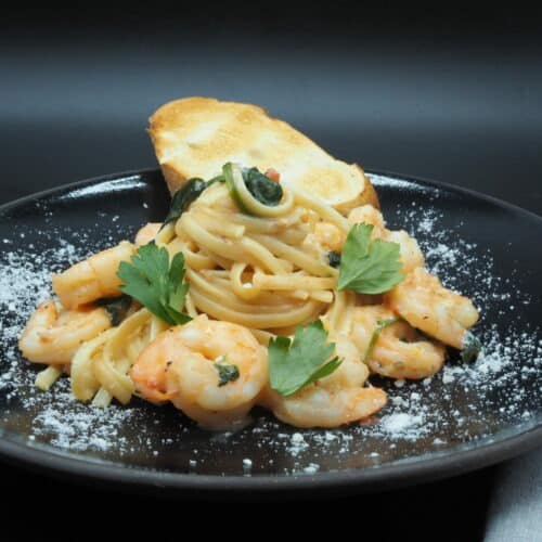 - In a pot of salted boiling water, cook the linguine according to package instructions. Drain and set aside.