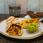 Place the chocolate in a microwave-safe bowl. Microwave for 20-second increments, each time stirring, until the chocolate is smooth.(Overheating the chocolate will cause it to burn and not melt, be cautious not to microwave for longer than short increments) To serve, Spoon the beef and bean onto the tortilla, fold in the ends and roll up. Drizzle with hot sauce (if using). Serve with guacamole, chips, churros with melted chocolate, and sparkling water.