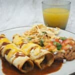 Lay the tortillas on a flat surface and spoon the beef mixture in the center. Roll the tortillas into a cigar shape and place them seam side down on a foil-lined baking sheet.