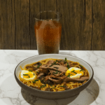 Serve: Portion the soup into bowls. Top with beef and eggs (sliced in half lengthwise). Enjoy with the kombucha.