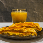 Crunchwrap: Layer the tortilla with sausage, eggs, half of the cheese, tostada, hash browns, remaining cheese, and soft taco shell over the top. Fold the edges of the tortilla inwards, one section at a time. (It will kind of make a star shape).