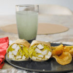 Roll the wraps tightly and serve with potato chips and lemonade.