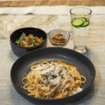 Toss with the egg mixture immediately, stirring quickly to coat and create a creamy sauce. Add a splash of reserved pasta water if needed to loosen the sauce. Season with salt, pepper, and extra Parmesan if desired.