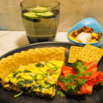 Heat a nonstick pan on medium heat. Once hot, add in the oil. Sauté the chicken and onion until the chicken has a nice golden brown on all sides. Add in the spinach and sauté until wilted. Then remove the contents from the pan to cool down for about 5 minutes.