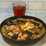 Serve: Portion the soup into bowls. Top with chicken and eggs (slice the eggs in half lengthwise in the bowl). Drizzle with sriracha if desired and top with nori. Enjoy with the pomegranate spritzer.