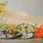 Serve the wraps with carrot sticks, hummus, pickle spears, and chia fresca.