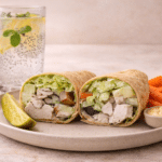 Serve the wraps with carrot sticks, hummus, pickle spears, and chia fresca.