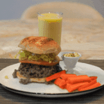 Serve the chopped cheese sandwiches with carrots and hummus and mango lassi.