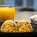 Assemble the wraps: Spoon the chorizo potato egg mixture onto each tortilla. Fold in the sides and roll tightly. Slice if desired.