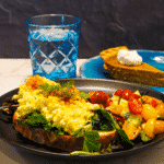 Layer the bread with spring mix and egg salad. Lightly season with cracked pepper. Garnish with dill. Lightly dust with paprika.