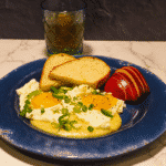 Place the eggs over the grits and top with scallions. Season with salt and pepper. Serve with toast and appple.