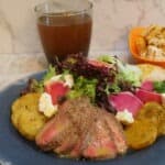 Grill the steaks on both sides to your desired temperature using a thermometer. (see below) Once cooked set on a cutting board to rest for 5 minutes before slicing against the grain.
