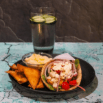 Serve: enjoy the pita with pita chips, hummus, and cucumber water.