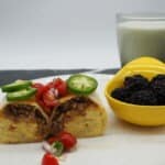 Cut in half and spoon the Pico de Gallo over the top with jalapeno slices (optional). Serve with sliced blackberries on the side.