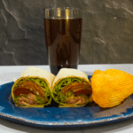 Cut in half and serve with chips, pickle, and kombucha.