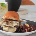 Assemble the Sandwich: Layer the roast beef with melted provolone, then top with sautéed onions and mushrooms. Close with the top half of the bun.