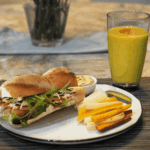 Serve the jambon beurre with carrot sticks, hummus, pickle spears, and mango lassi.