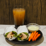 Serve lettuce wrap with carrot sticks, ranch, and apple cider.