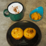 Serve the muffins (2 per portion) with apricot and cappuccino.