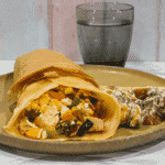 Place the mixture on the wrap, fold in one or both ends and roll up tightly.