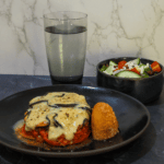 Assemble Moussaka: Layer half of the eggplant in the bottom of an appropriately sized baking dish or oven-safe container, then cover with all of the Meat Sauce. Top with remaining eggplant, then pour the Béchamel sauce over top.