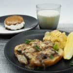 Place the halved rolls on a foil-lined baking sheet. Top each roll with beef onion mixture and cheese.