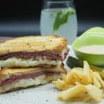 In a bowl whisk together the ingredients for the thousand island. Season with salt and pepper to taste. Add more relish if desired. Spread the sauce on all slices of bread or serve on the side.