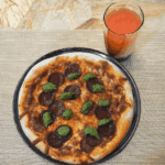Serve: Portion the pizza and enjoy it with a cold glass of kombucha.