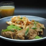 Toss the dumplings in the sauce and serve. Garnish with scallions.
