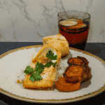For the yams: Mix the remaining ingredients (orange juice, brown sugar, ground ginger, cinnamon, butter) in a sauté pan and bring to a boil on high heat.