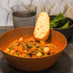 • Once the stew is flavorful remove from the heat. Serve with bread. Garnish with thyme.