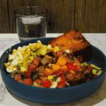 Once cooked, set aside to rest for 3-5 minutes before dicing into bite sized pieces.