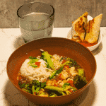 Add the broth, lemongrass, chicken, and lime juice. Stir well, bring to a low simmer until the chicken reaches an internal temperature of 160°F using a thermometer.